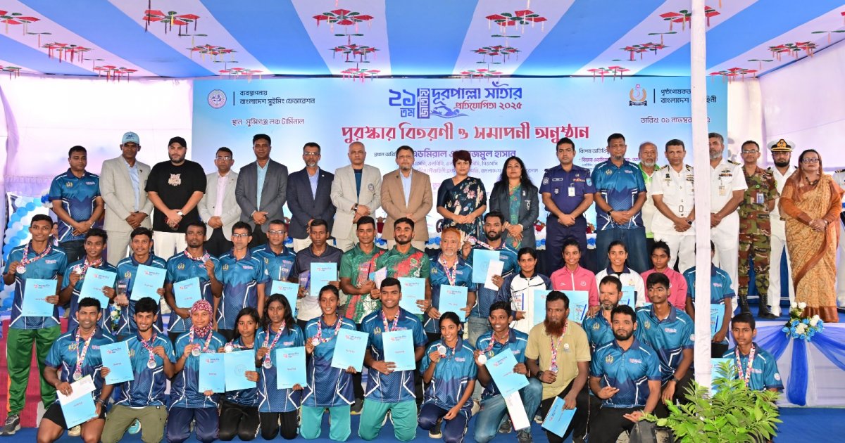 The prize-giving and closing ceremonies were held at the Munshiganj Launch Terminal Memorial premises. Admiral M Nazmul Hassan, chief of Naval Staff and president of the Bangladesh Swimming Federation, attended as the chief guest and distributed prizes among the winners.