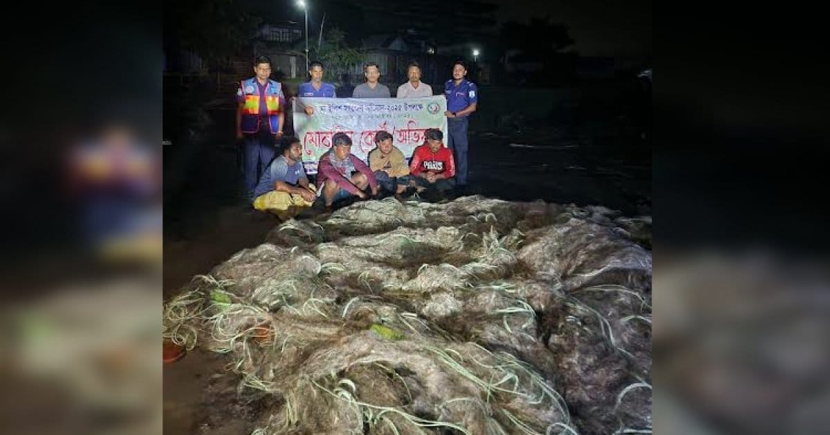 At the same time, 400,000 meters of illegal current nets and 10kg of ilish fish were seized. Later, the mobile court sentenced them to 15 days in jail and destroyed the seized nets. The seized ilish fish were given to the local madrasa.