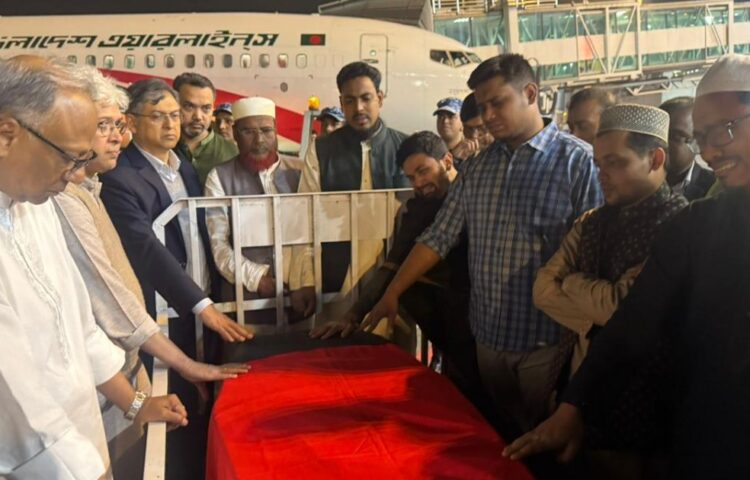 The body of Inqilab Mancha spokesperson Sharif Osman Hadi arrived in Dhaka on Friday evening, officials said. The flight carrying Hadi’s body landed at Hazrat Shahjalal International Airport at 5:50pm.…