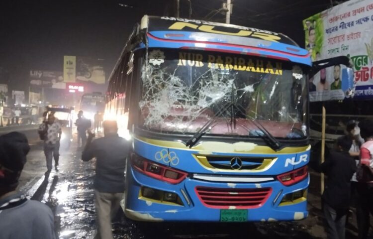 A clash broke out between bus workers and students over half-fare at the Nathullabad Central Bus Terminal in Barisal on Saturday evening, bringing traffic to a standstill for nearly three…