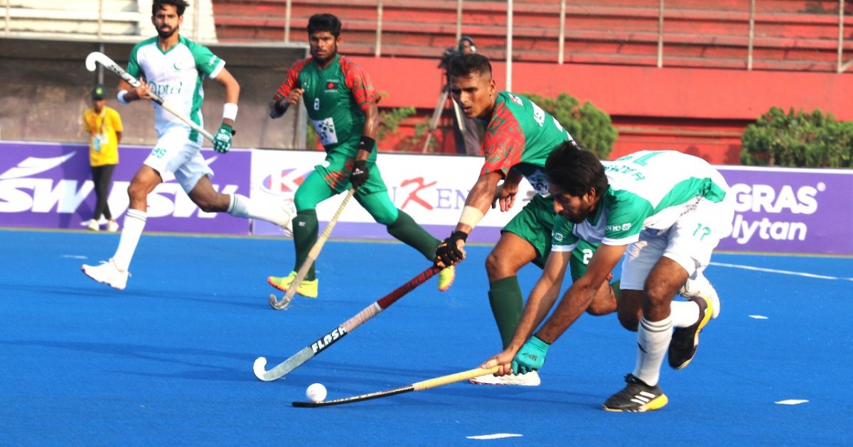 Bangladesh blocked three Pakistan attacks within the first minute. The momentum shifted as skipper Ammad put the visitors ahead in the fourth minute from a penalty stroke.