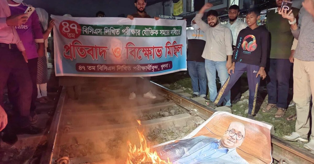 A group of students blocked the railway line in Khulna on Sunday, demanding “reasonable time” to take preparations for the 47th BCS written examination.