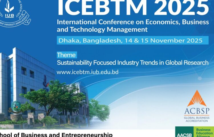Independent University, Bangladesh (IUB) will host the International Conference on Economics, Business and Technology Management (ICEBTM 2025) on November 14-15, 2025, at The Westin Dhaka, focusing on “Sustainability Focused Industry…
