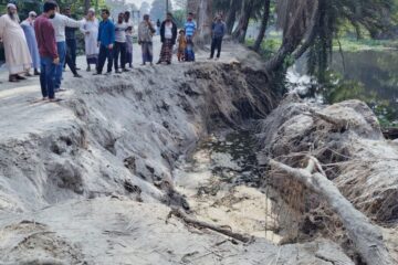 A portion of Hemayet Uddin Bir Bikram Road has collapsed into the Kotalipara–Poysarhat canal at Bankura village in Kotalipara upazila of Gopalganj, causing immense suffering for local residents. Part of…