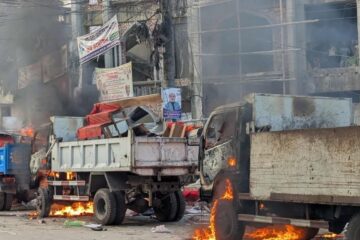 At least 15 municipal cleaners were injured, and three municipal trucks were set on fire during an eviction drive targeting illegal establishments at Notun Bazar, the commercial hub of Bhola…