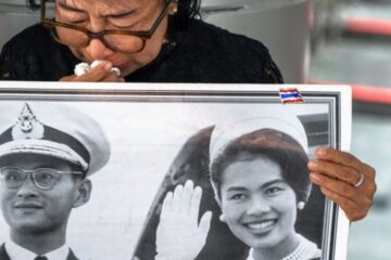 Around a dozen Thai mourners dressed in black sat outside a Bangkok hospital where the former Queen Sirikit, whose death was announced early on Saturday, had been receiving treatment. Among them…