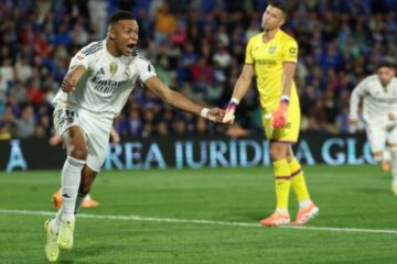 Kylian Mbappe extended his goalscoring streak to 11 consecutive games to help Real Madrid reclaim top spot in La Liga with a 1-0 victory at nine-man Getafe on Sunday. After…
