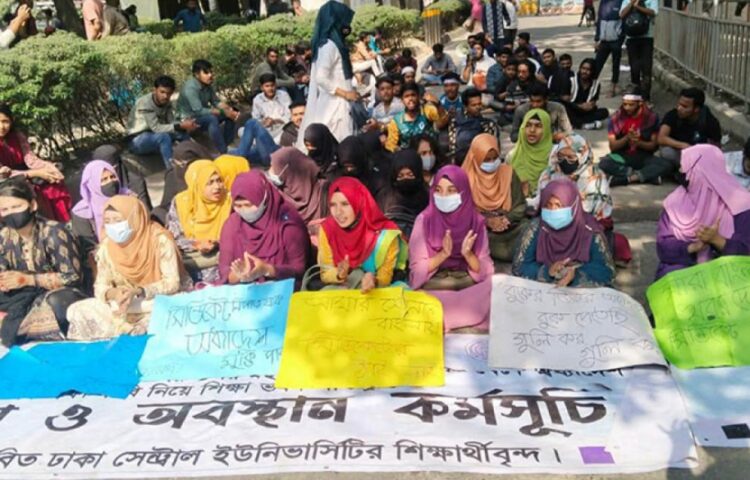 Students of seven government colleges continued their sit-in for a second consecutive day on Monday in front of the Shikkha Bhaban, demanding the immediate issuance of the Dhaka Central University…