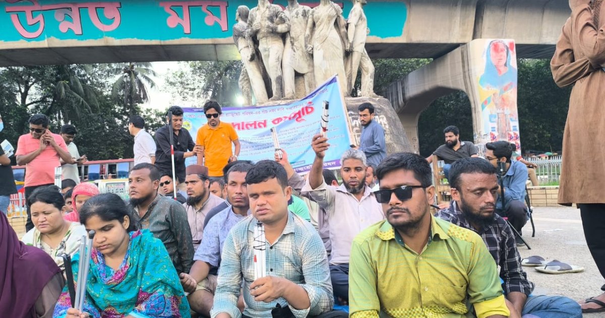 Organized by the Job-Seeking Graduates with Disabilities Council, the protest began on October 19 in front of the National Museum at Shahbagh and has since shifted to the Raju Memorial Sculpture on the Dhaka University campus.