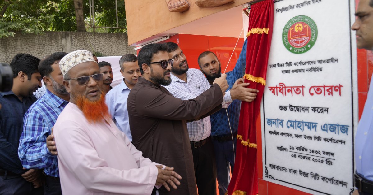 DNCC Administrator Mohammad Ejaz formally opened the structures—”Mukti Toran” in Agargaon and “Swadhinata Toran” on Pragati Sarani—in separate ceremonies on Tuesday morning.