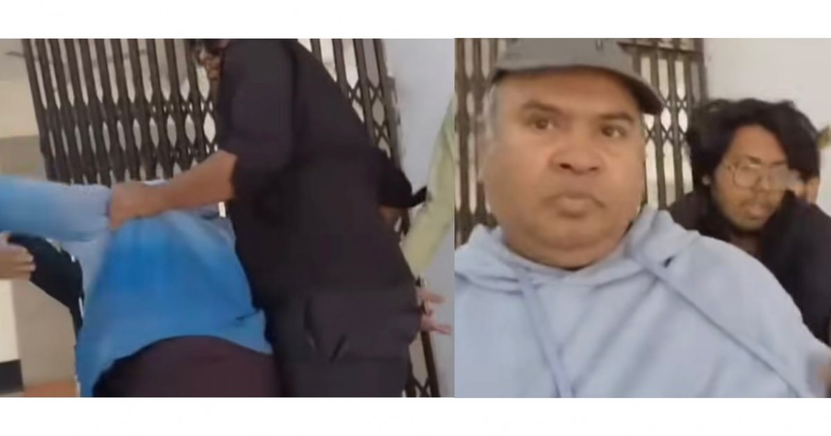 AB Zubair, the Social Welfare Secretary of Ducsu (Dhaka University Central Students’ Union), harrassed Professor AKM Jamal from Dhaka University’s Sociology Department, a known supporter of the pro-Awami League Neel Dal (Blue Party), at the Social Sciences Faculty building.