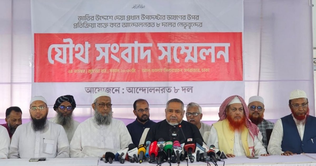 On Friday morning, at a press conference in Moghbazar, Dhaka, Dr Syed Abdullah Mohammad Taher, Nayeb-e-Ameer of Jamaat-e-Islami expressed the position of these eight parties.