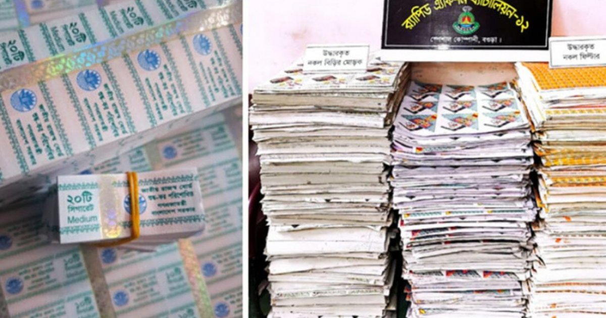 According to RAB, Ruhan Printing Press, located in Ward 15 of Bogra Municipality, had been producing counterfeit band rolls, packets, filters, and labels for bidi and cigarette products and supplying them across the country.
