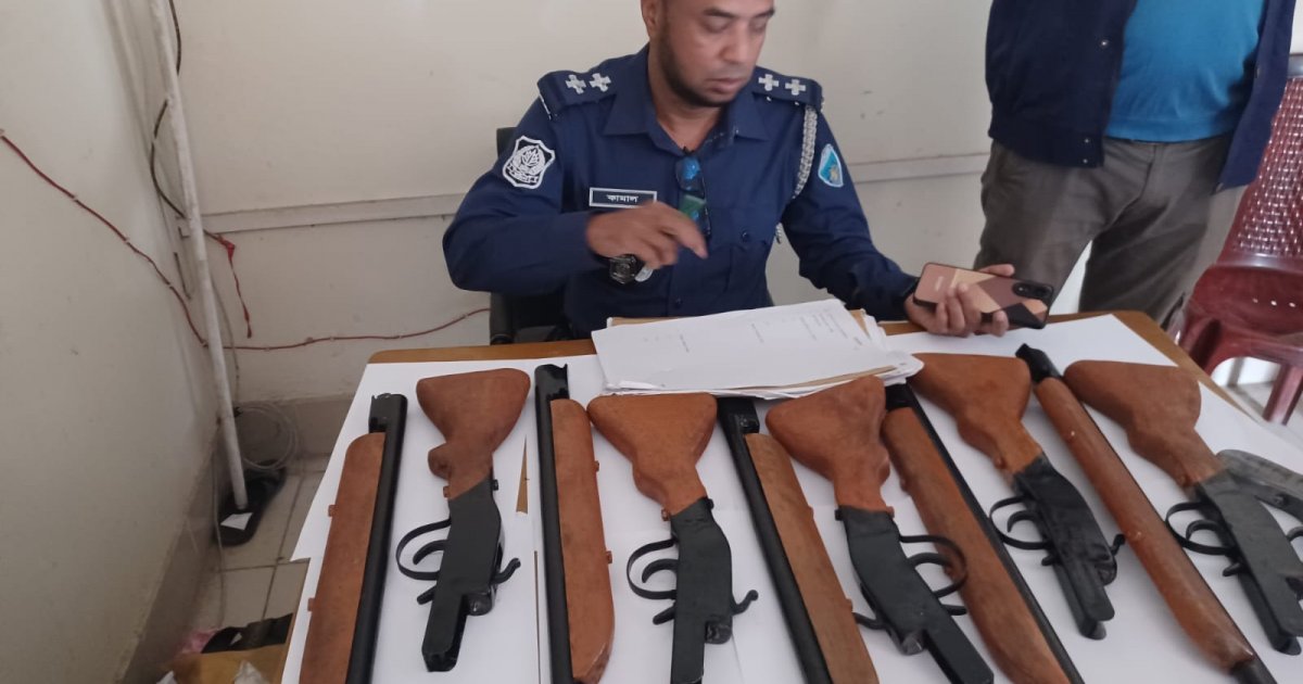 Police said the recovered items include five newly made locally produced single-barrel guns and one pipe gun. Since the location falls under Chandraganj Police Station of Lakshmipur district, the firearms were handed over there for further investigation.