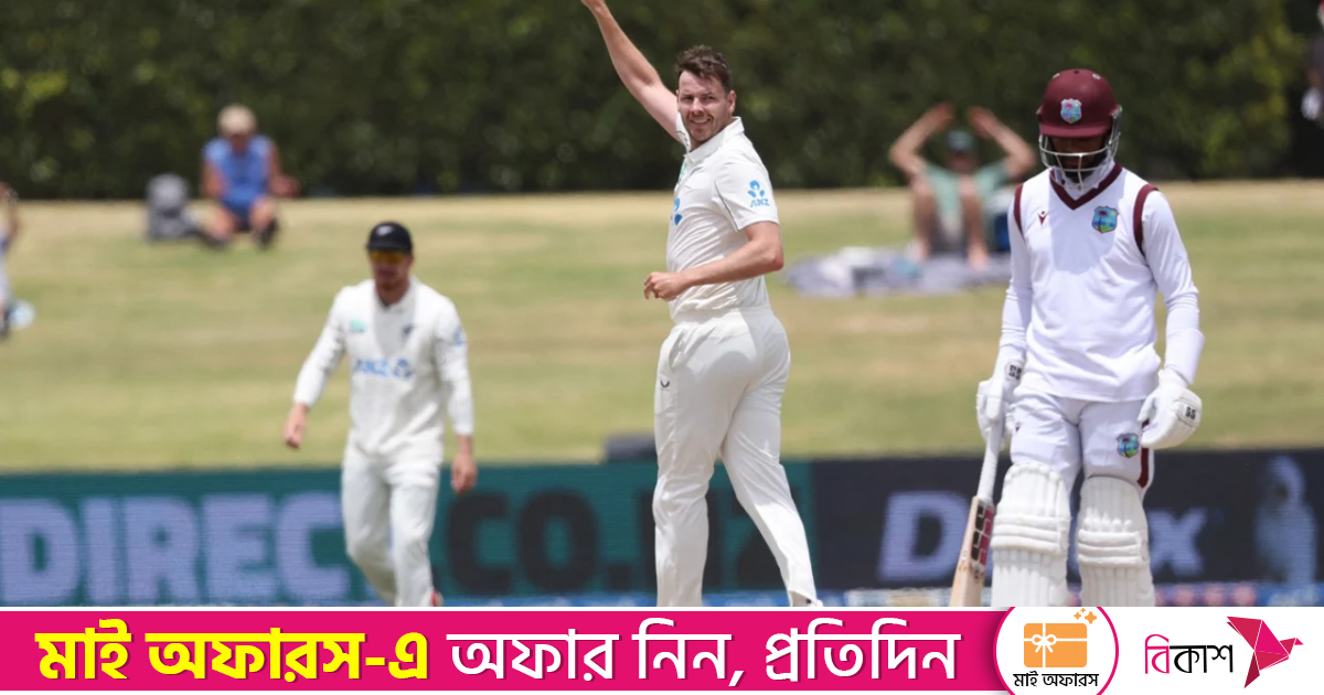 Rachin Ravindra was introduced in the final session and snared Anderson Phillip’s wicket with an lbw, before Duffy wrapped up the innings by bowling Jayden Seales.