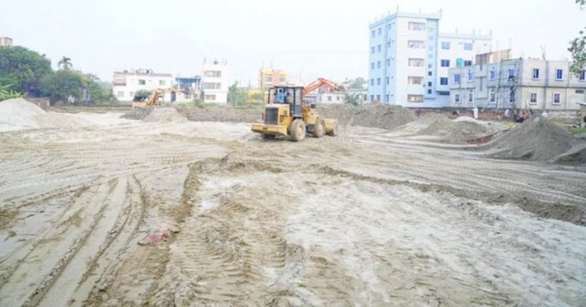 An illegally filled-up pond is being re-excavated aimed at restoring its previous shape at Mollapara area in Rajshahi city.