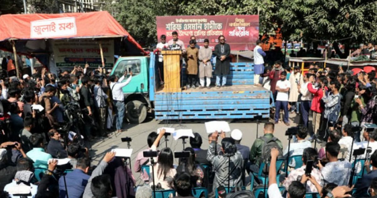 Inqilab Mancha held a rally on Saturday in protest against the shooting of its spokesperson Sharif Osman Hadi, who is also a prospective independent candidate for the Dhaka-8 constituency in the upcoming 13th National Parliamentary Election.