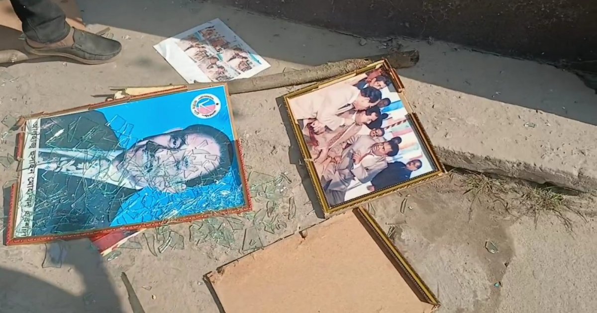 The protesters later vandalised photographs of party founder Hussain Muhammad Ershad and party symbols, including the plough emblem, and set them on fire.