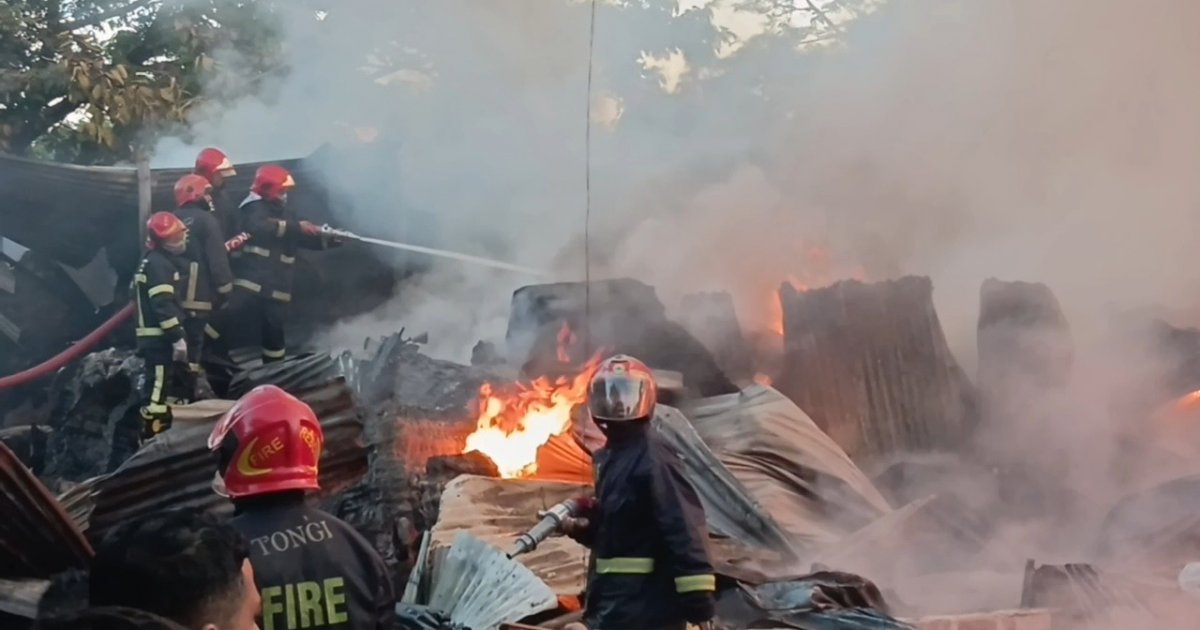 Several warehouses’ goods were destroyed by the blaze. Upon receiving the report, three units of the Tongi Fire Service worked for nearly an hour to bring the fire under control.