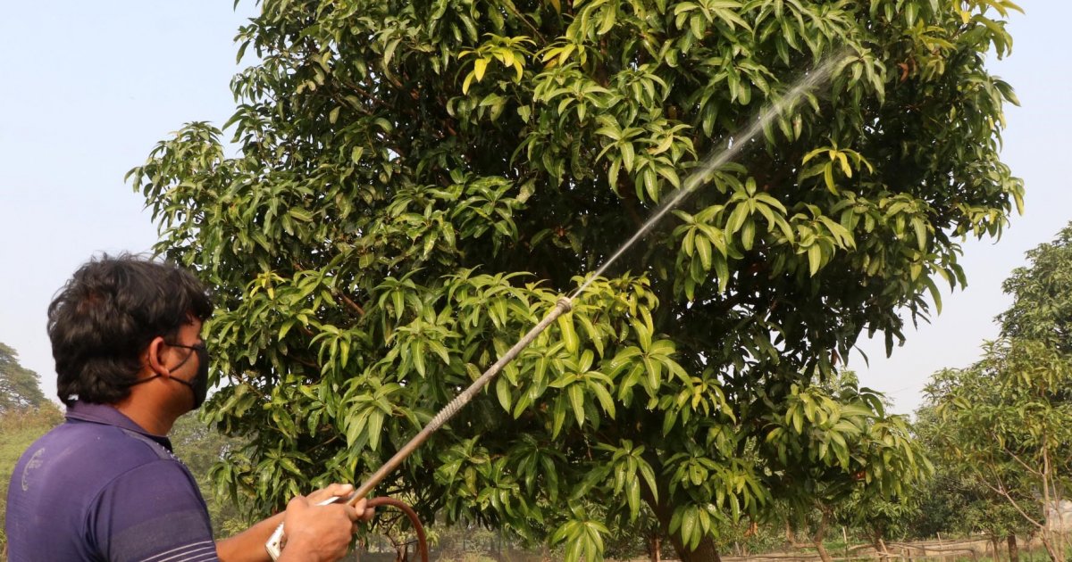 During a recent visit to mango orchards in Paba upazila and near Shimla Park in Rajshahi city, it was seen that farmers were irrigating trees and spraying pesticides. They were also busy removing weeds and loosening soil.