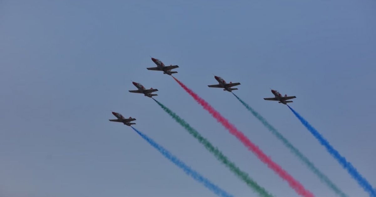 Marking the 54th anniversary of Victory, a total of 54 paratroopers—among them Bangladesh Investment Development Authority Chairman Chowdhury Ashikur Rahman and 53 members of the armed forces—performed free-fall jumps while carrying the national flag of Bangladesh.