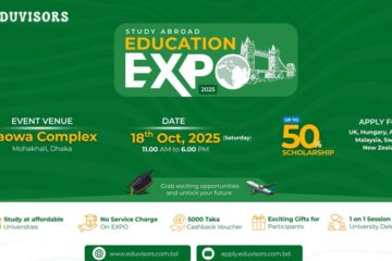 International education consultants Eduvisors, is organizing “Study Abroad Education Expo 2025” at Raowa Complex – Level 12, Mohakhali DOHS, Dhaka, on Saturday, from 10am to 6pm. The expo will feature…