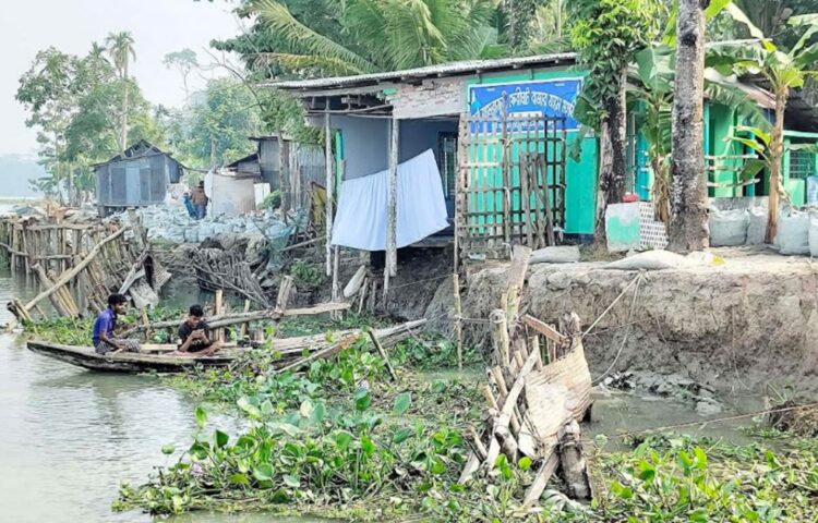 Erosion by the Sandhya River has threatened the market, road, and mosque at Amrajuri union in Kaukhali upazila of Pirojpur. Although the Water Development Board is currently throwing geo-bags into…