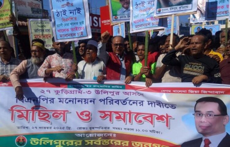 A faction of BNP leaders and activists in Kurigram-3 constituency (Ulipur) staged road blockades and sit-in protests demanding a change of the party’s nominated candidate. The demonstration took place on…