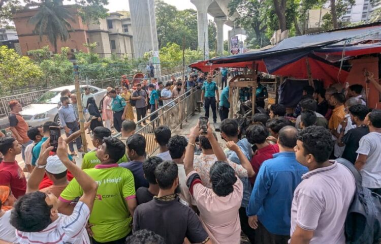 A bearing pad from an elevated Dhaka metro rail pillar suddenly dislodged and plummeted onto a busy Farmgate sidewalk around 12 noon Sunday. The 140–150kg rubber-and-steel pad struck a 35-year-old…