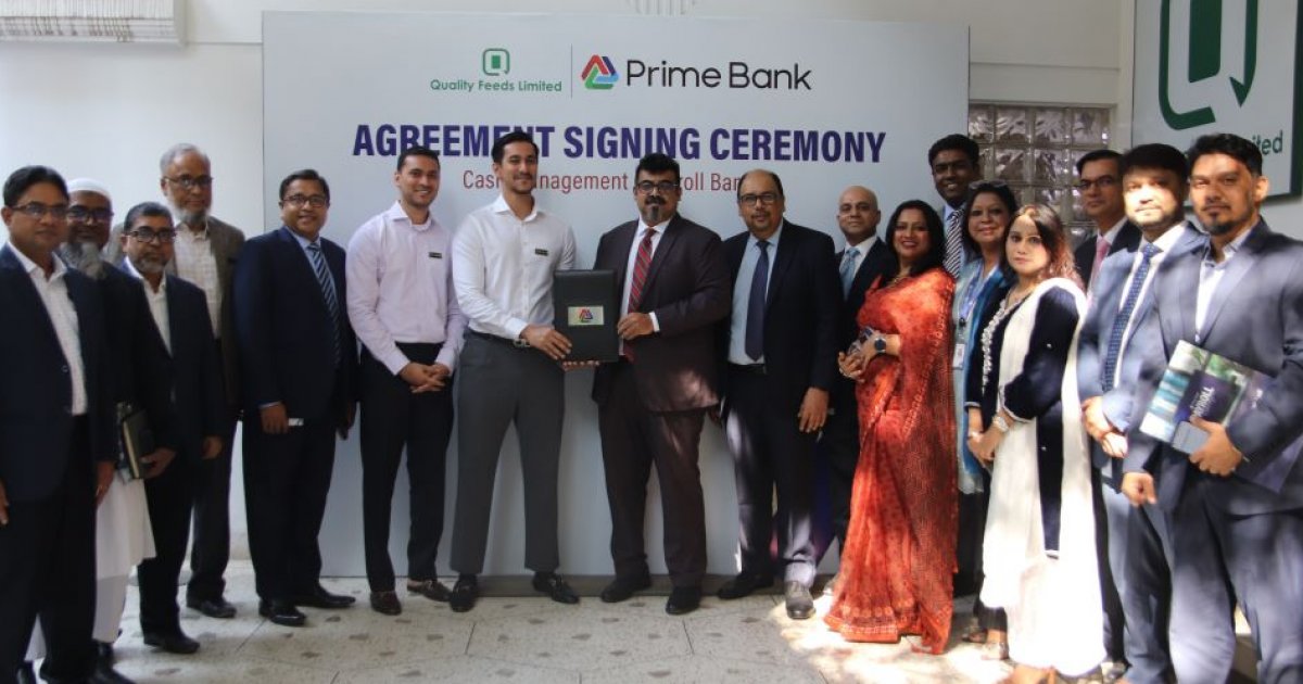 Prime Bank PLC recently signed an agreement with Quality Feeds Limited, a leading Bangladeshi animal feed manufacturer, to offer comprehensive payroll banking and cash management services.