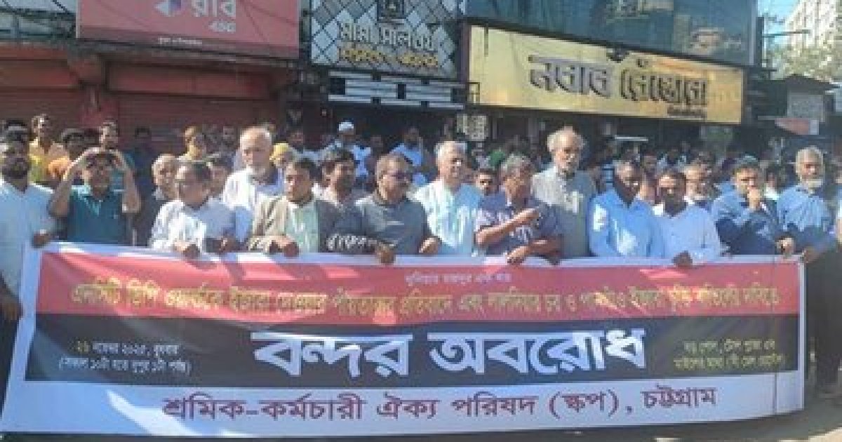 Leaders and activists of Shramik Karmachari Oikya Parishad (SKOP) blocked access to the Chittagong port’s entry gates in protest, accusing the authorities of manoeuvring to lease the New Mooring Container Terminal (NCT) to DP World and demanding the cancellation of lease agreements for Laldia Char and Pangaon.