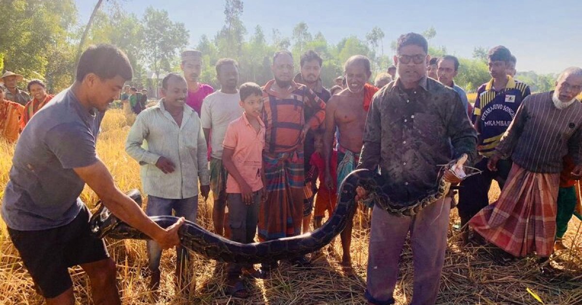 Farmers spotted the snake on Friday morning while they were harvesting paddy in a field near Noagaon Fokirbari. Panicked by the sight, they immediately stopped working and informed the Bangladesh Wildlife Service Foundation about the snake.