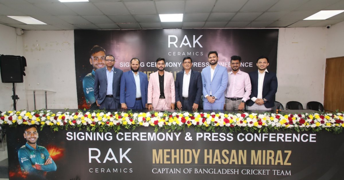 RAK Ceramics Bangladesh, a globally recognized leader in ceramic and gres porcelain wall tiles, floor tiles, countertops, and sanitaryware, has announced the renewal of Mehedi Hasan Miraz, captain of the Bangladesh National Cricket Team (ODI format), as its brand ambassador for 2026-2027.