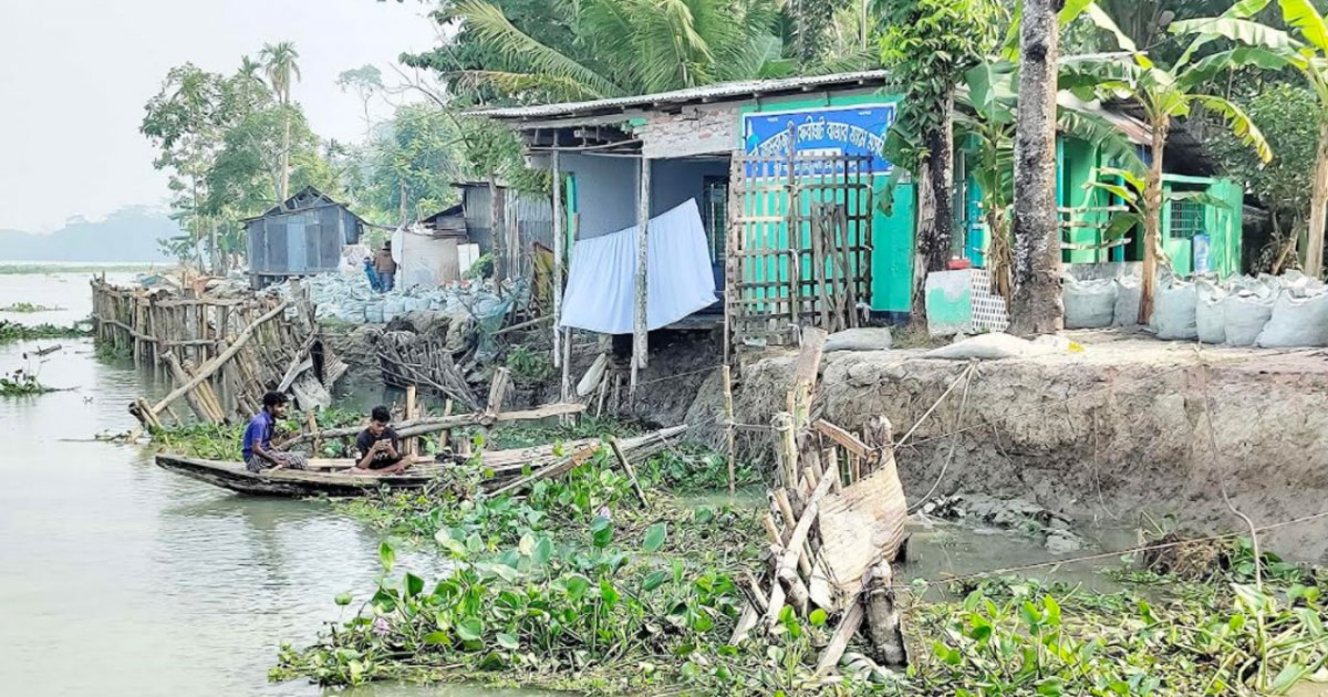 Imam of Purba Amrajhuri Bazar Mosque, Gazi Md. Anwar Hossain, said, ” Six months ago, prayers could be offered in the mosque, but suddenly the wall in front of the mosque collapsed and disappeared into the river. Earlier, there was a place for four rows of prayers, but now there are two rows of prayers, which is also a concern.”