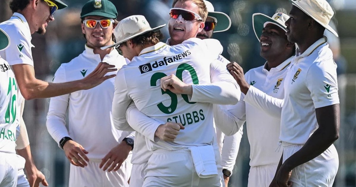 South Africa reached the 68-run target for the loss of captain Aiden Markram (42) and Tristan Stubbs (nought), both to spinner Noman Ali, who finished with 2-40.