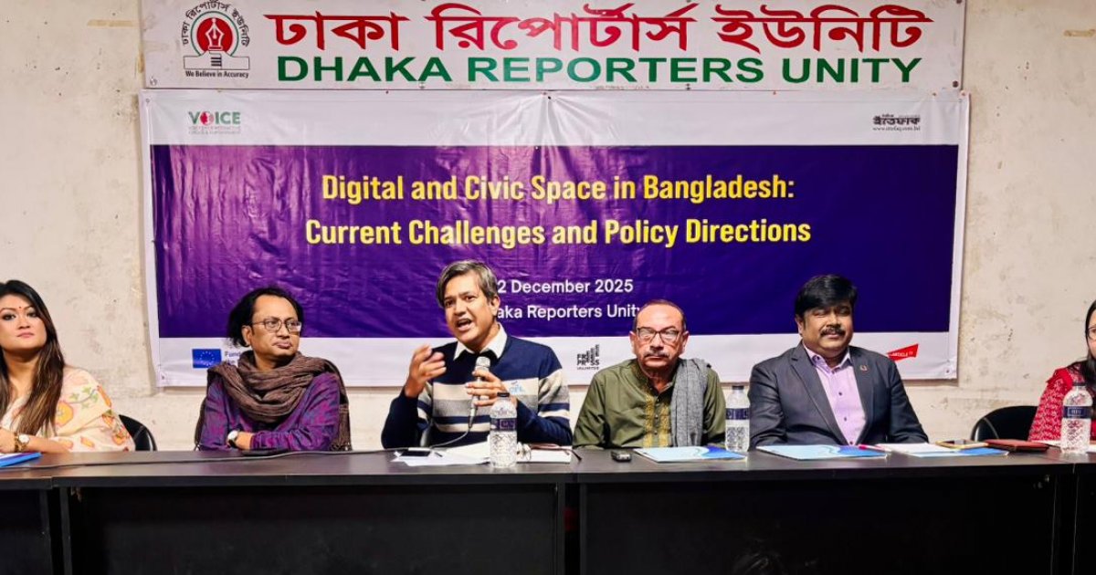 The consultation, titled “Digital and Civic Space in Bangladesh: Current Challenges and Policy Directions,” was held at Dhaka Reporters Unity and brought together representatives from civil society organizations, media, academia, the legal community, as well as women and youth activists, reflecting a broad-based effort to address challenges in both online and offline civic engagement.
