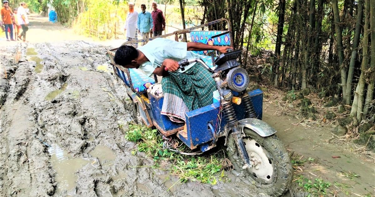 Sadek Ali Mia, head teacher of Jamurki Nawab Sir Abdul Gani Multipurpose High School, said: “I was born in this village and have seen no development on this road in my lifetime. People from three upazilas use it for education, agriculture, and daily travel. Even a little rain turns it into a muddy swamp. Students suffer the most trying to reach school.”