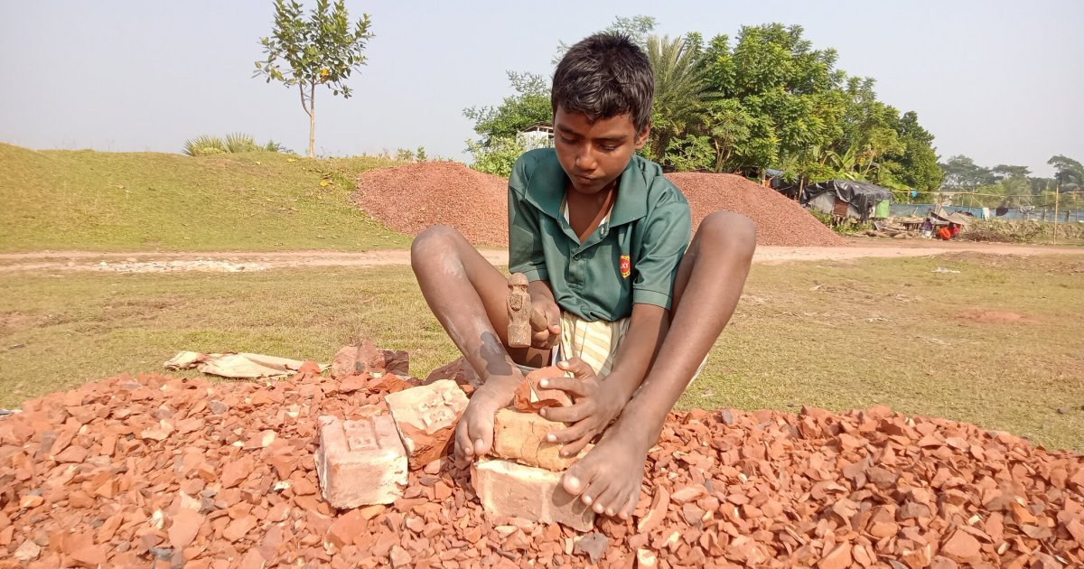 Brick kilns roar with activity for much of the year in Sadar, Patharghata and Amtali upazilas. But beneath the smoke lies a grim picture. Children aged 8 to 16 are toiling under the sun, carrying clay, drying raw bricks, and hauling loads far beyond their strength. Low wages make children an easy target for kiln owners. In Dhupti area, 11-year-old Sujon smashes bricks with a hammer, his tiny hands blistered from long shifts. “When I stop, they cut my pay,” he says. “I wanted to study, but who will feed my family? The heat makes it hard to breathe, but I keep working… the stove at home won’t light without my income.”